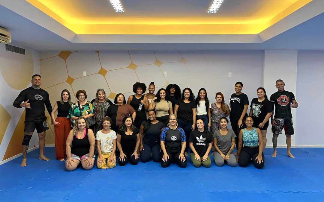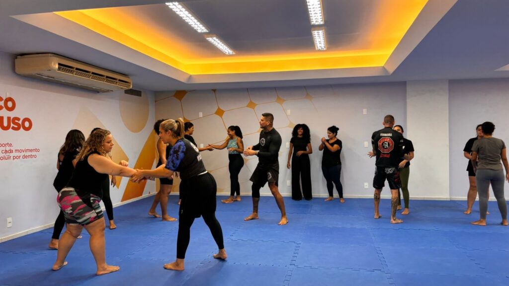 A primeira atividade foi uma aula de defesa pessoal no Centro de Formação Darcy Ribeiro. A oficina foi conduzida pela guarda municipal Aline, com apoio da Secretaria Municipal de Ordem Pública. As participantes receberam orientações práticas para agir em situações de perigo ou violência. O treinamento reforçou o preparo físico e emocional como ferramentas de segurança e autonomia.